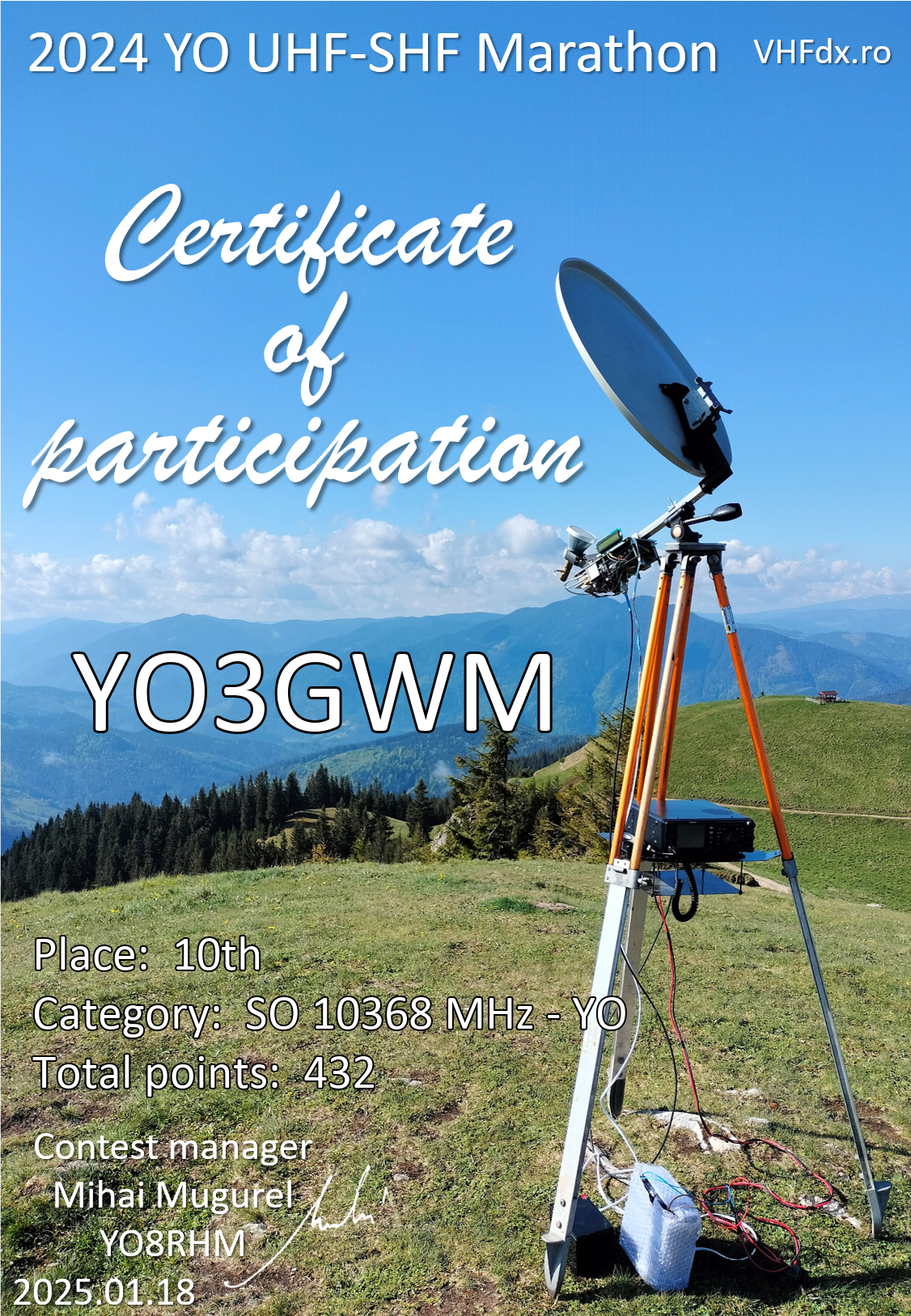 | 10 | YO3GWM | 432 | 432 | Certificate | |||||||||